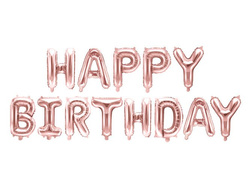 Balony foliowe tworzące napis Happy Birthday - różowe złoto