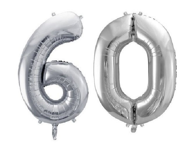 Balony foliowe srebrne liczba 60 urodziny 86cm