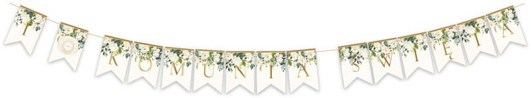 Baner papierowy z nadrukiem Hostii oraz kwiatów na I Komunię Świętą