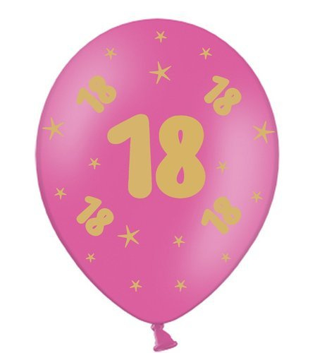 Balony lateksowe w kolorze różowym ze złotym nadrukiem na 18 urodziny