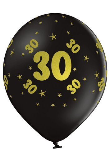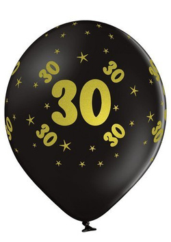 Balony lateksowe czarne ze złotym nadrukiem na 30 urodziny