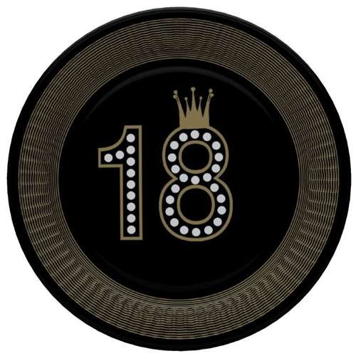Talerzyki papierowe 18 urodziny korona 18cm 8szt