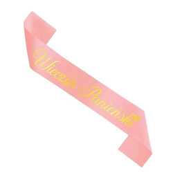 Wykonana z satyny w kolorze różowym z napisem w kolorze złotym :Wieczór Panieński