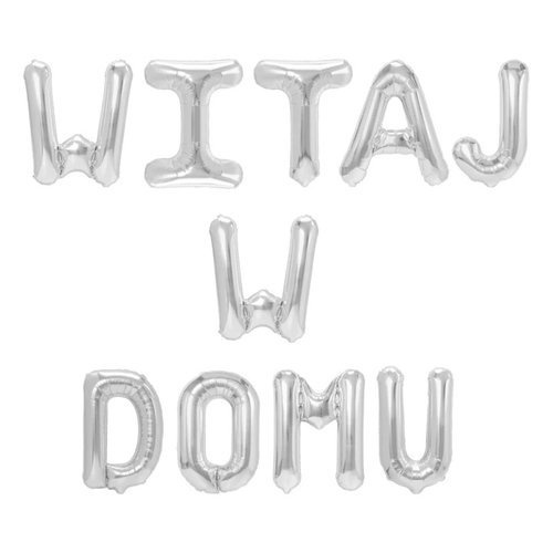 W zestawie 10 szt balonów, tworzących napis Witaj w domu