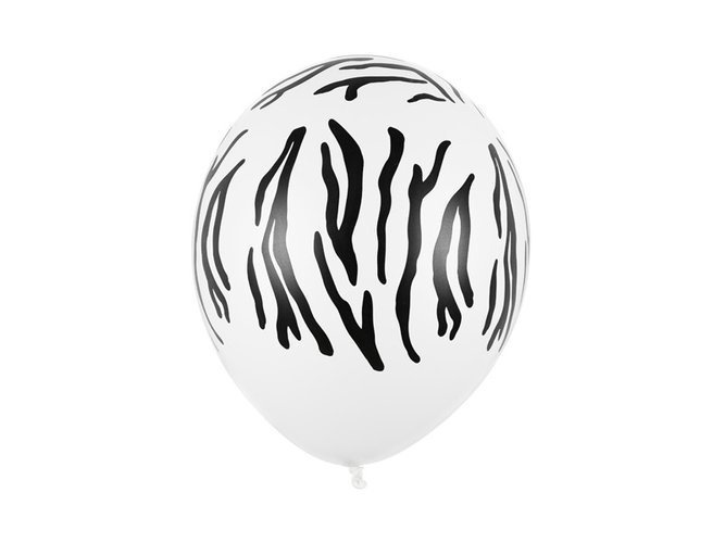 Balon lateksowy w kolorze białym z nadrukiem czarnego wzoru zebry