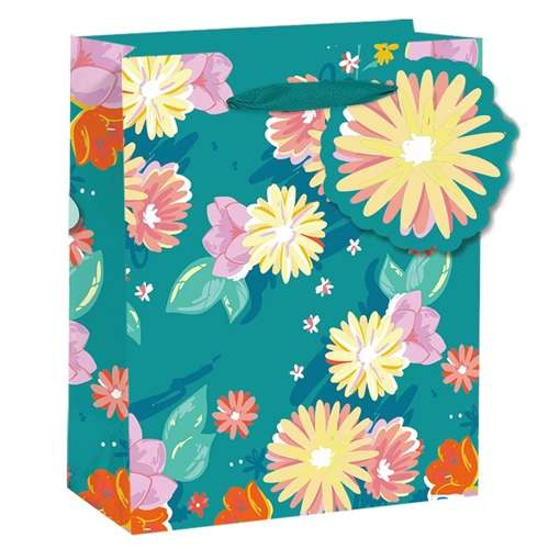 • Torebka na prezenty kwiaty zielona 26x32x12.5 cm