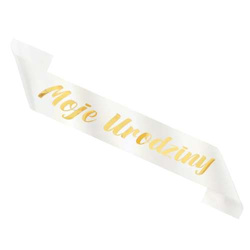 Szarfa w kolorze białym z napisem Moje Urodziny