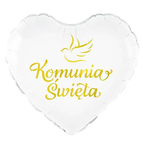 - biały balon foliowy serce na Komunię Świętą - 45cm x 1 szt