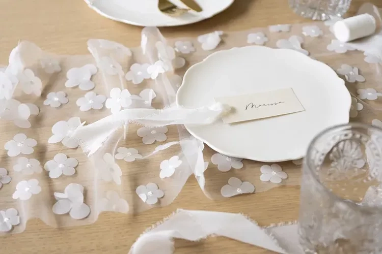 Bieżnik muślinowy Kwiaty biały 26 x 500 cm