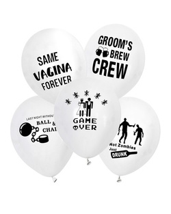 - Balony lateksowe Wieczór Kawalerski białe 5szt