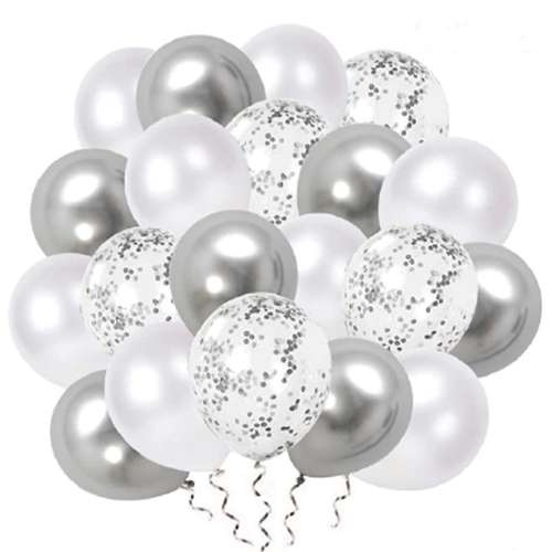 - Bukiet balonowy srebrny konfetti 30cm 12szt