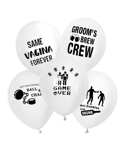 - balony lateksowe białe z nadrukami na Kawalerski, wielkość 30 cm x 5 szt