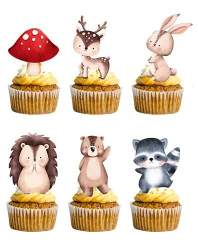 - pikery do dekoracji babeczek Leśne Zwierzęta x 6szt